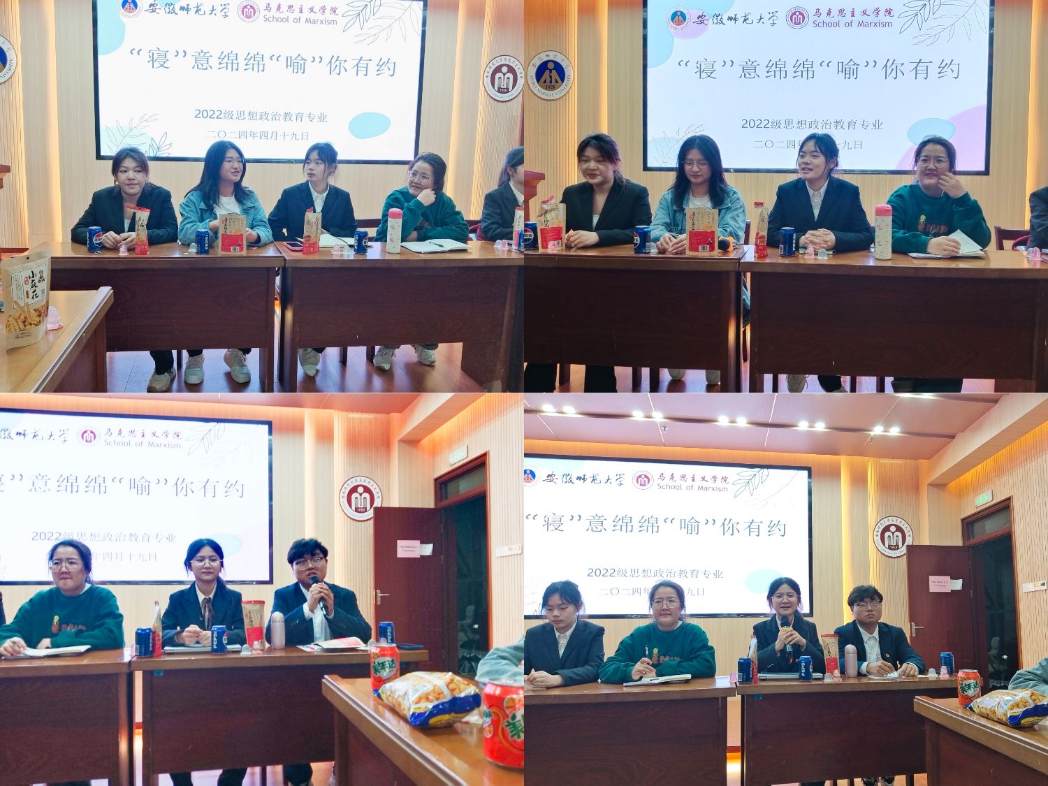 为切实解决同学们学习生活中的问题,营造温暖和谐的班级环境,4月19日晚,学院2022级思想政治教育专业在文典楼G108会议室开展开展寝室长有约座谈会,会议由心理委员相满意主持,全体寝室长参加。