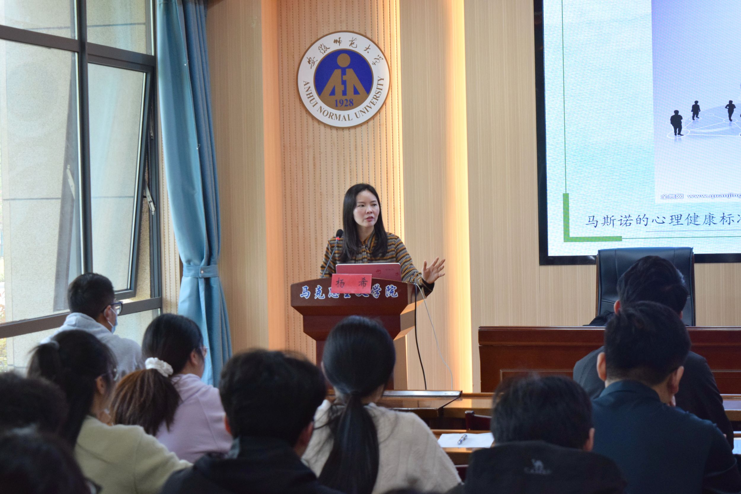 会上,杨希首先为同学们讲解了马斯诺的心理健康标准以及典型心理症候的表现,并从内外两个方面分析其产生原因。接着,她在带领同学们体验情绪和辨别情绪的基础上指出,情绪的作用并非严格的二元划分,而是需要遵循辩证原则,明确情绪在事件中产生,但事件本身并不影响人,人们只接受对事件看法的影响。她还围绕如何实现情绪管理提出了高低法则,她强调要通过培养检视生活的习惯、科学的思维品质,以及自我积极的心理赋能和持续的学习充电实现“对自己的和解”。现场提问环节,杨希就同学们在心理咨询、情绪管理等方面的问题进行了耐心解答,并立足专业视角为同学们提供了心理健康咨询的多种途径。
