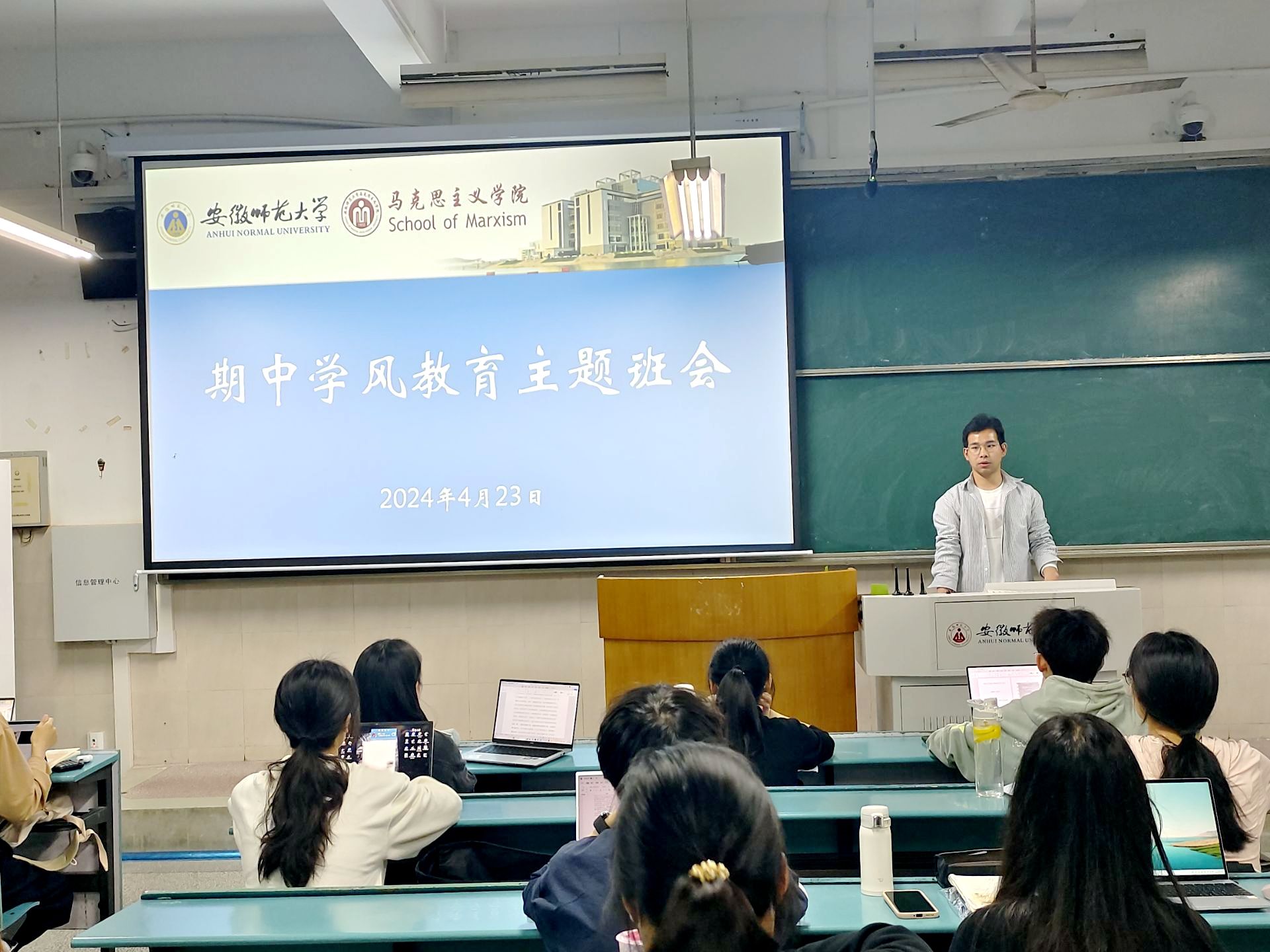 为营造良好的学习氛围,端正学习态度,4月23日下午,2023级本科生在2020104、2020203和2020204教室开展了期中学风教育主题班会。会议由2023级本科生辅导员王梦雨主持,2023级全体本科生参加。