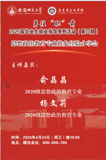 【勇往“职”前】学院开展2025届毕业生就业指导系列活动——第四期之思想政治教育专业保研经验分享会