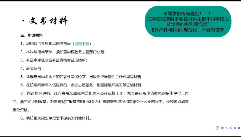 交流会上,郭丙辰对两位主讲人进行简单介绍并表示热烈的欢迎。俞晶晶首先为大家介绍了保研的具体流程和时间线以亲身经历为大家介绍夏令营简历投递和预推免的策略详细地为大家展示文书材料准备的要点。杨文莉从具体流程、准备工作、心态调试三个方面为大家分享了自己的体会与心得提醒大家提前准备好个人材料,及时巩固专业知识,关注学界的研究热点,鼓励大家在冲的基础上以“稳”为主,根据自我定位做好取舍。随后两位主讲人针对大家提出的一系列问题进行详细的解答,为各位同学的保研备考提供有益参考。