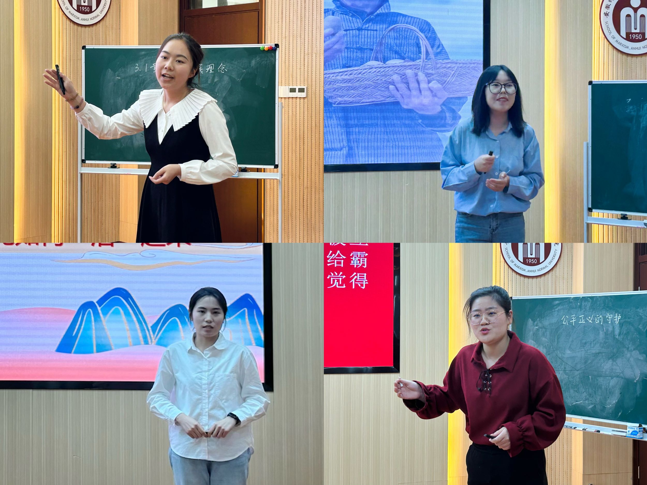 赛前,陶永华老师介绍莅临指导老师,并希望选手们赛出本领、赛出风采。比赛过程中,各参赛选手围绕“经济与社会”“法律与生活”“哲学与文化”等主题,通过精美的课件展示、优美的板书设计、独特新颖的教学方法和深入浅出的课堂解说,展现出清晰的教学逻辑与扎实的专业基础,充分彰显了各自独具特色的课堂魅力,体现了我院师范生良好的教学技能与过硬的教学功底。