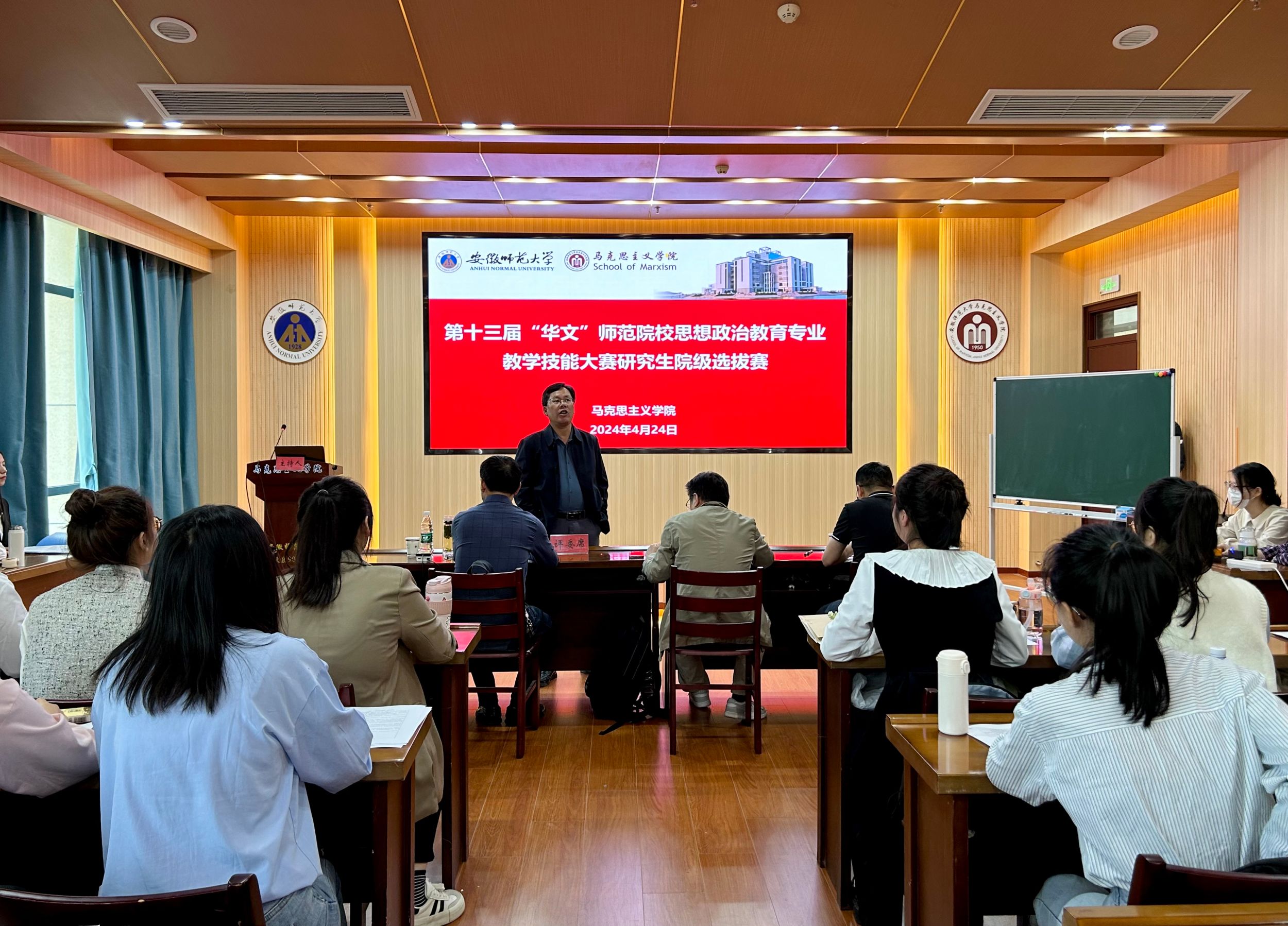 4月24日下午,永利集团304am在文典楼G108举办第十三届“华文”师范院校思想政治教育专业教学技能大赛研究生院级选拔赛。本次比赛邀请安徽省特级教师、芜湖市教科所书记俞宏胜、芜湖市高中政治学科大组副组长、第二中学教研组组长黄必向、芜湖市高中政治学科大组副组长,第十二中学教研组组长王华宝担任评委。比赛由学术部委员程玉主持,共20名选手参赛。