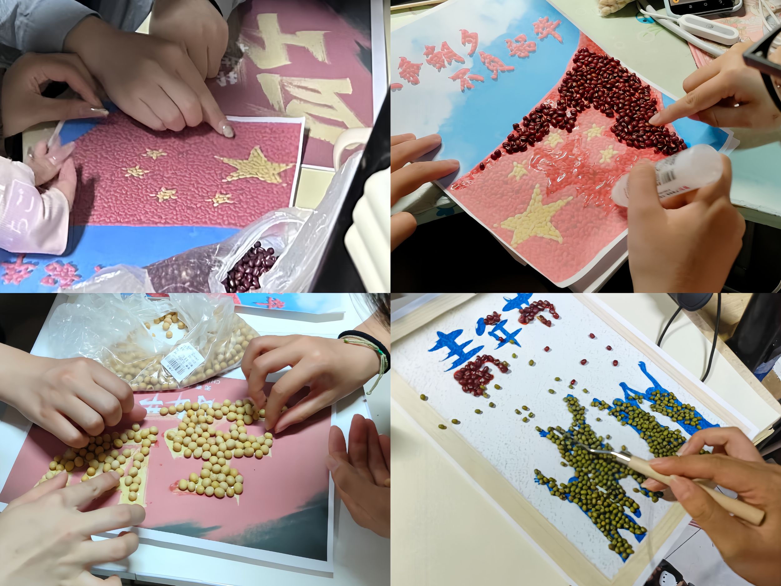 五谷绘梦,心书责任。五谷杂粮手工画和“党在我心、责任在肩”手写书签的创意活动则让同学们在动手制作中感受到了传统文化的魅力,传达青年对党和祖国的热爱之情。