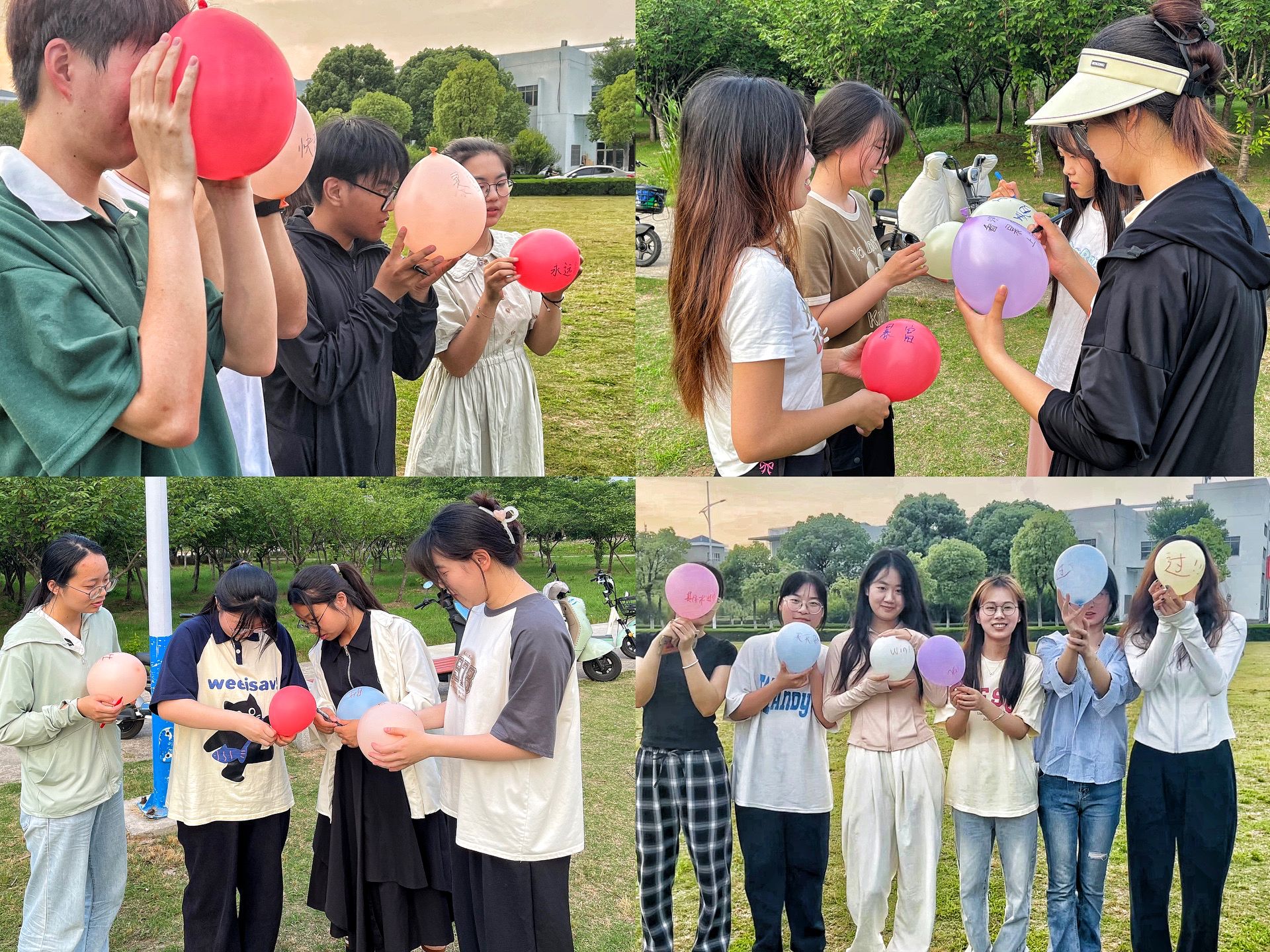 气球寄愿,放飞梦想。同学们在气球上写下心愿,运送到终点,象征着追逐梦想的足迹,激励同学们脚踏实地、努力拼搏。