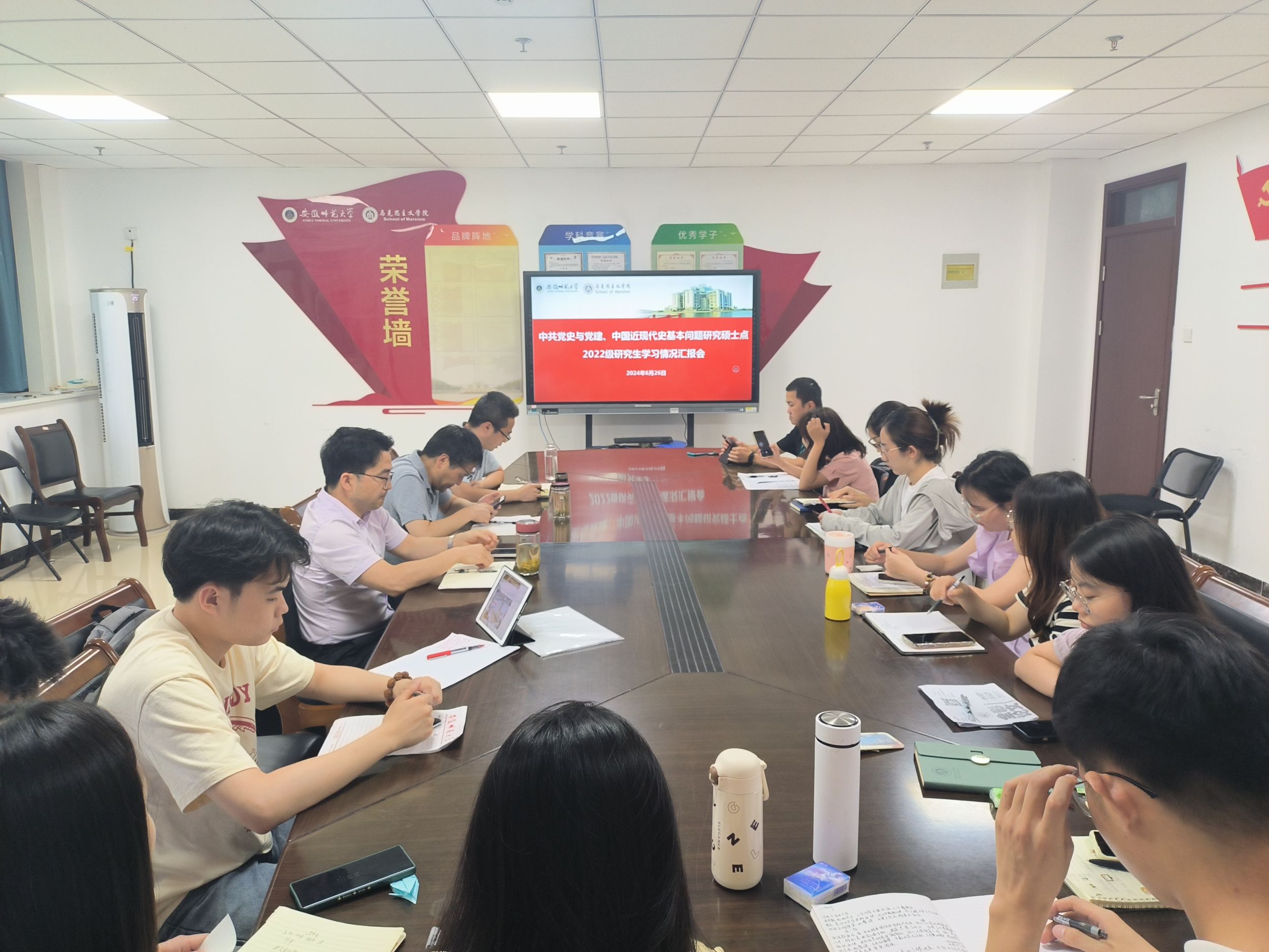 6月26日下午,中国近现代史基本问题研究、中共党史与党建硕士学位点在永利集团304am文典楼G215会议室联合举办2022级研究生学习汇报会。此次会议由中国近现代史基本问题研究硕士点负责人崔明海副教授主持,中共党史与党建硕士点负责人孙亮副教授、学位点导师章征科教授应邀出席并作点评。学位点2022级全体同学参与学习汇报会。