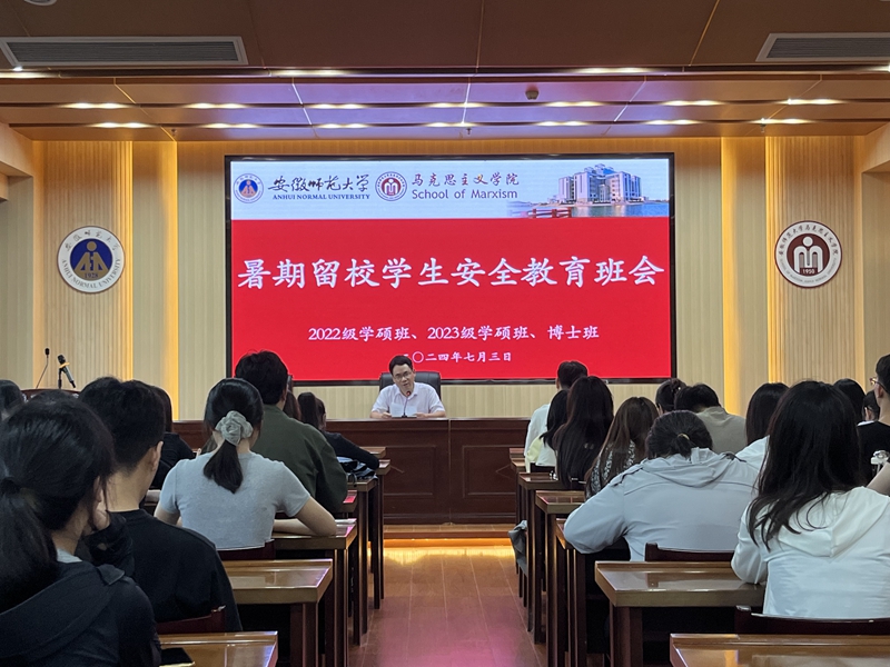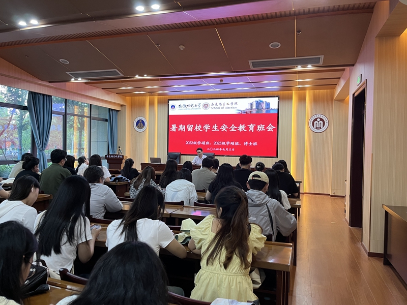 为加强暑期留校学生管理,维护学校正常教育教学和生活秩序,进一步贯彻落实好学校暑期安全工作相关要求,7月3日下午,永利集团304am2022级学硕班、2023级学硕班、博士班召开暑期留校学生安全教育班会,此次班会由辅导员周楠主讲,2022级学硕班、2023级学硕班、博士班全体留校学生参加。