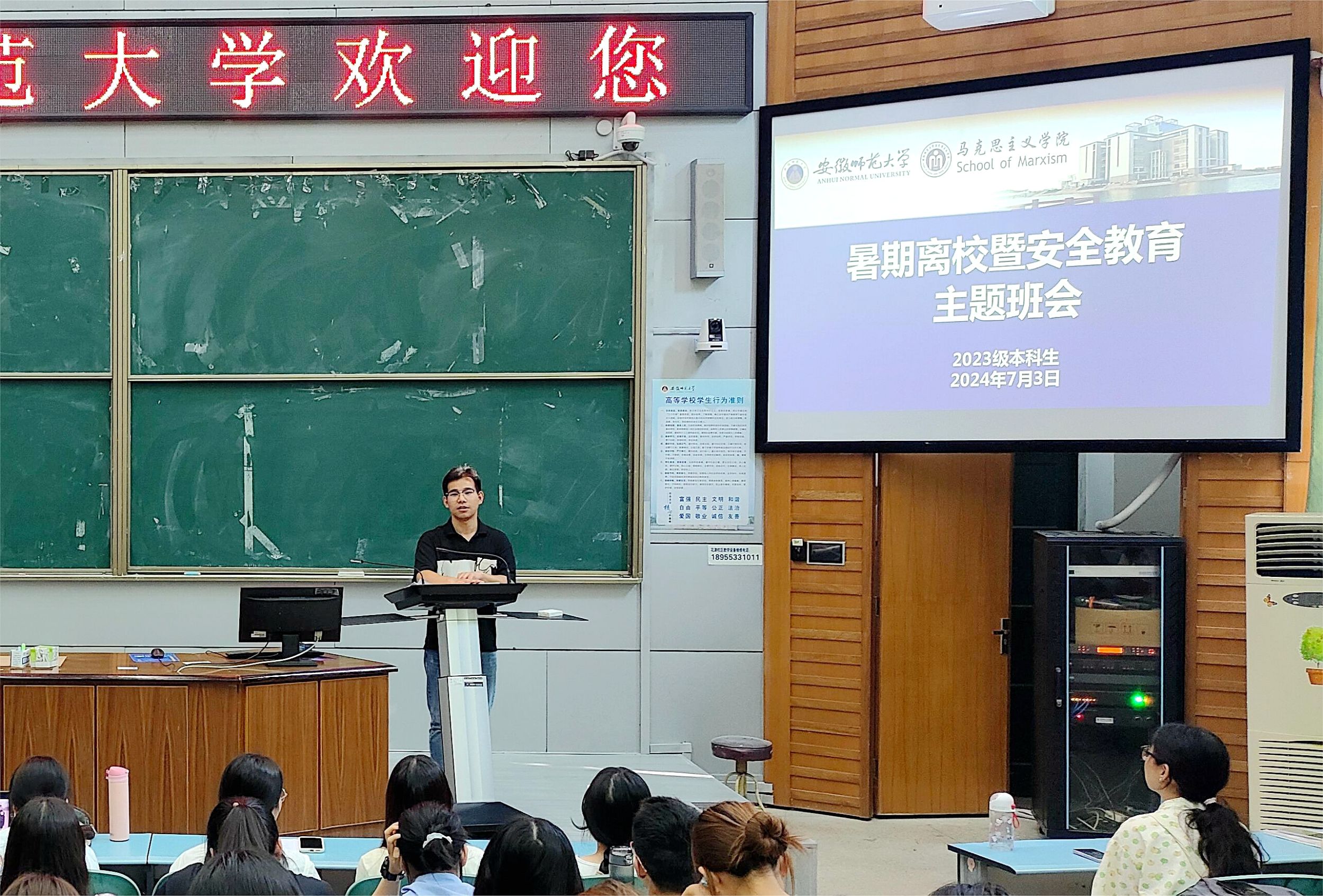 为进一步做好学生暑期离校安全教育工作,引导学生树立安全意识和责任意识,提高安全防范技能,筑牢安全防线,7月3日下午,永利集团304am2023级本科生在2010105教室召开了暑假离校暨安全教育主题班会。班会由辅导员王梦雨主持,全体学生参加。