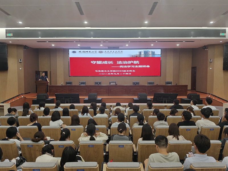 班会上,主讲人围绕习近平法治思想和宪法展开。主讲人首先为同学们介绍了习近平法治思想的历史背景、思想内涵、理论意义等内容,深化了同学们对习近平法治思想的认识;其次,主讲人围绕宪法地位与作用等内容展开,呼吁大家成为宪法的忠实崇尚者、自觉遵守者、坚定捍卫者。班会紧扣“三贴近”原则,形式鲜活接地气,为与会同学树立起宪法法律至上、法律面前人人平等的法治观念。