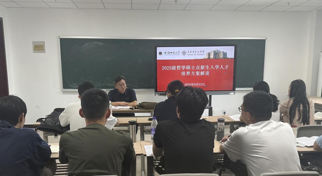 9月23日下午,永利集团304am哲学硕士点文典楼G113教室成功召开2025级新生入学人才培养方案解读会。会议由哲学一级硕士点负责人余在海教授主持,全体哲学专业硕士新生参加。
