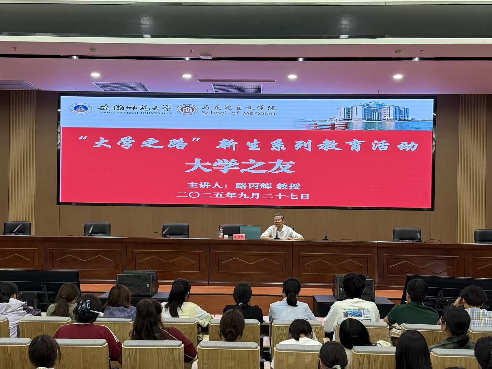 9月27日下午,永利集团304am在西裙楼三楼报告厅举行“大学之路”系列新生入学教育活动之“大学之友”。本次讲座特邀党的二十大代表路丙辉教授主讲,辅导员陶娴静主持,2025级全体新生参加。