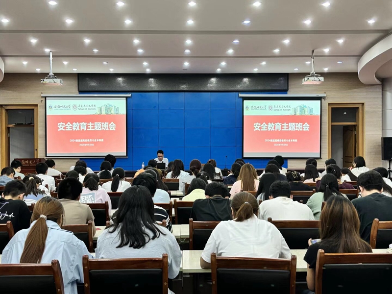 9月29日晚,2024级思想政治教育专业本科班在会议中心第三报告厅召开安全教育主题班会。由辅导员周楠主讲,全体同学参加。