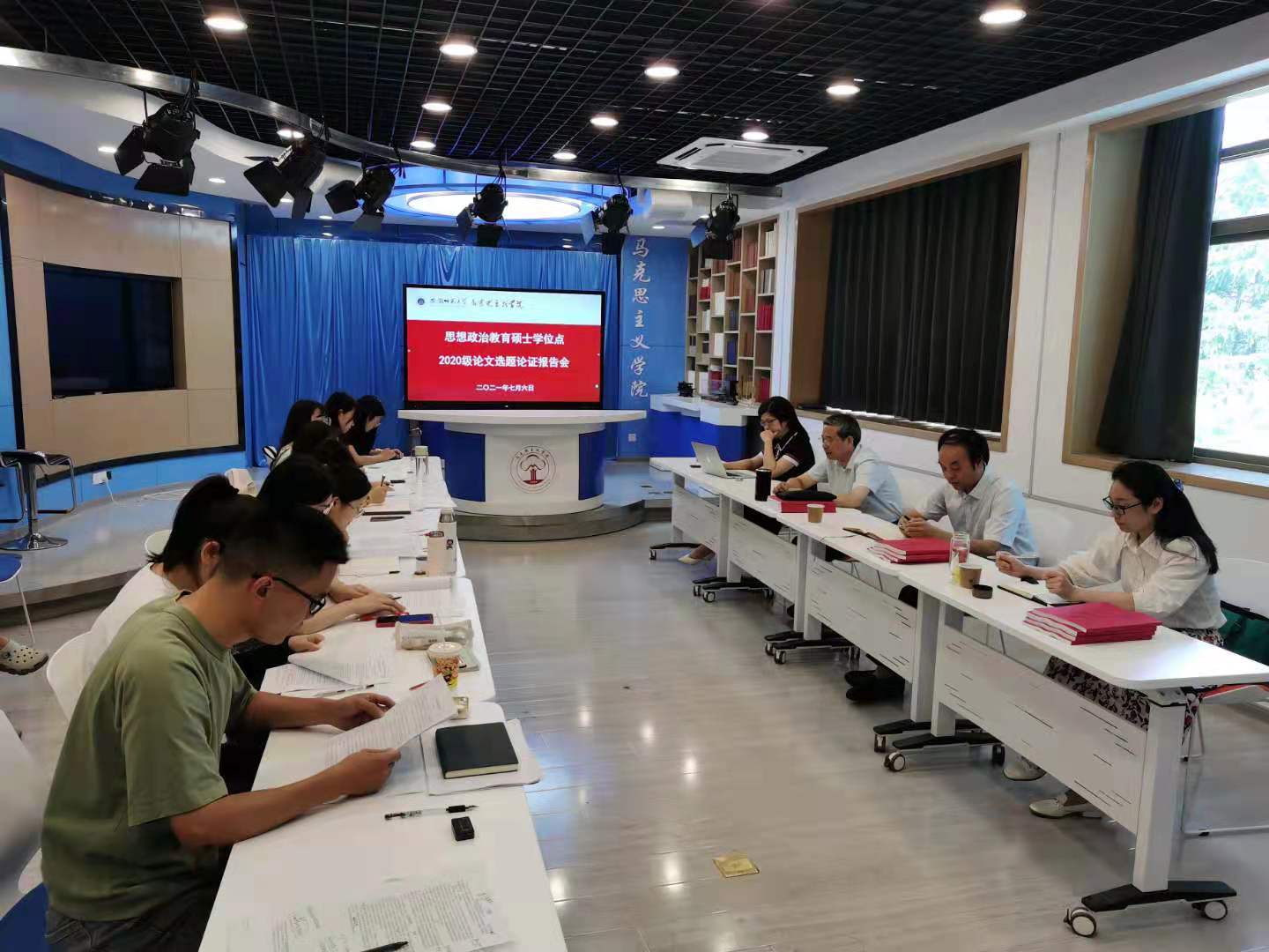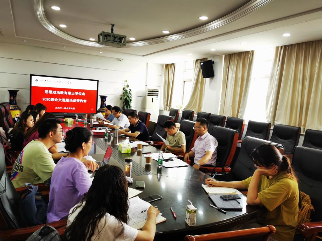 本网讯(文/张超、汪翠萍 图/张超、汪翠萍)7月6日上午8:30,思想政治教育硕士学位点2020级研究生毕业论文选题论证会在学院四楼第一会议室、学院二楼情景模拟实验室分两组同时进行。第一组由王习胜教授主持,赵冰副教授、陈勇副教授、杨希副教授、叶荣国副教授与会点评。第二组由路丙辉教授主持,赵平教授、王艳教授、牛菲副教授与会点评。2020级思想政治教育方向全体研究生参加。
