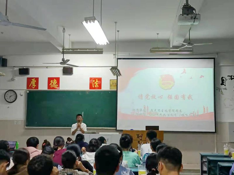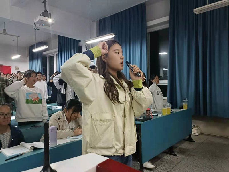 本网讯(永利集团304am文/摄骆鹏盛)为深入学习习近平总书记“七一”重要讲话精神,充分继承和弘扬伟大建党精神,赓续红色血脉,引导广大团员青年和团干部深刻领会和把握讲话的重大意义,永利集团304am2021级思想政治教育(师范)专业团支部于10月13日晚开展“请党放心,强国有我”主题团日活动。专业全体学生到会参加,辅导员沈镇到会指导。