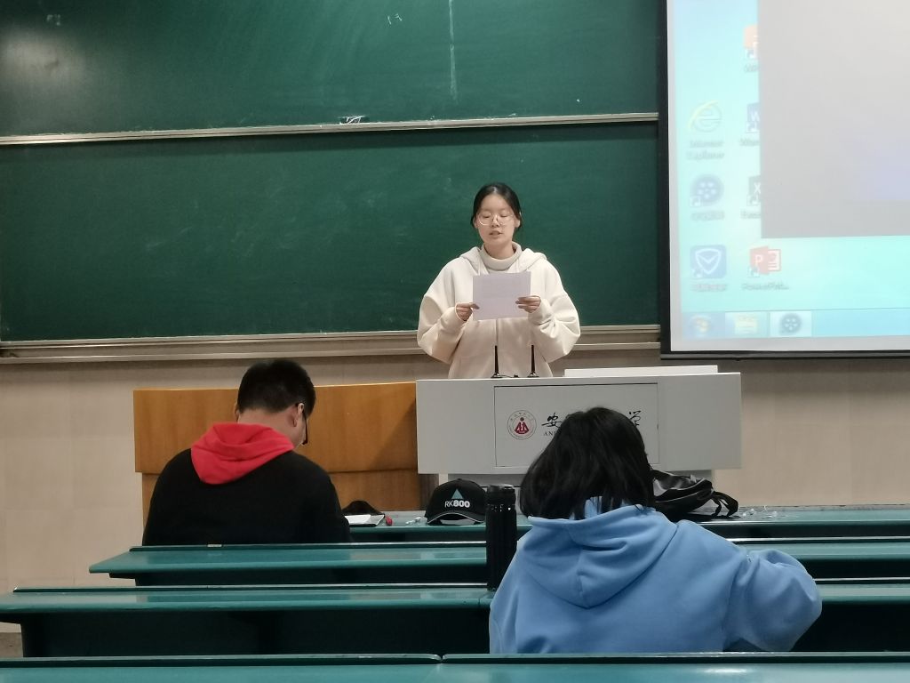 2019级思想政治教育专业舒晗同学做总结发言,鼓励同学们主动作为、奋发有为、担当善为,将团支部建设的越来越好!