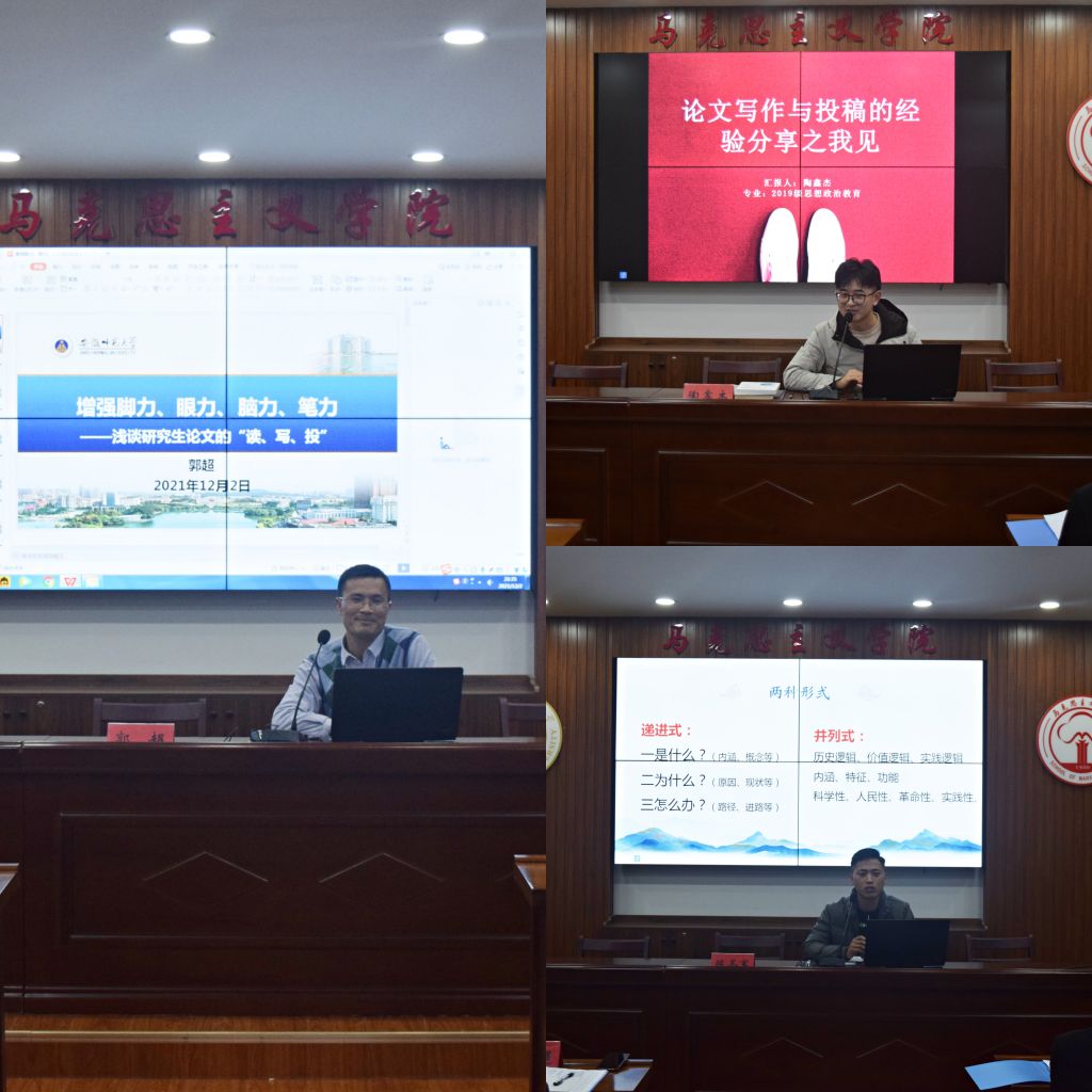 本网讯(文/赵兵 摄/郜峰)12月2日晚七点,学院研究生会在五楼会议室举办了研究生“读、写、投”经验交流会。会议邀请了郭超老师、陈圣军、陶鑫杰两位学长分享论文写作及投稿的相关经验。本次经验交流会由研会学术部委员韦孟雪主持。