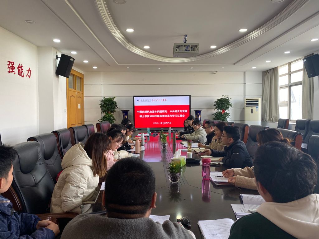 本网讯(文/图 原立婷)12月8日下午,中国近现代史基本问题研究、中共党史与党建硕士学位点在学院四楼第一会议室共同举办2020级研究生阅读分享与学习汇报会。会议由中国近现代史基本问题研究硕士学位点点长崔明海副教授主持,中共党史与党建硕士学位点点长孙亮副教授、学位点导师佘君副教授受邀出席担任点评人,全体2020级中国近现代史基本问题研究、中共党史与党建方向研究生参加活动。