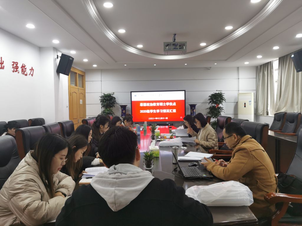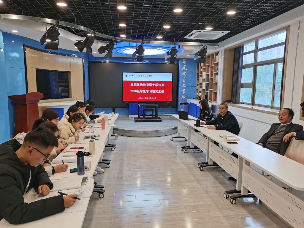 本网讯(文/张超、汪翠萍 摄/张超、汪翠萍)12月11日上午8:30,思想政治教育硕士学位点2020级学生学习情况汇报会在学院四楼第一会议室、学院二楼情景模拟实验室分两组同时进行。第一组由陈勇副教授主持、戴家芳教授、杨希副教授与会点评。第二组由路丙辉教授主持,赵平教授、牛菲副教授与会点评。2020级思想政治教育方向全体研究生参加。