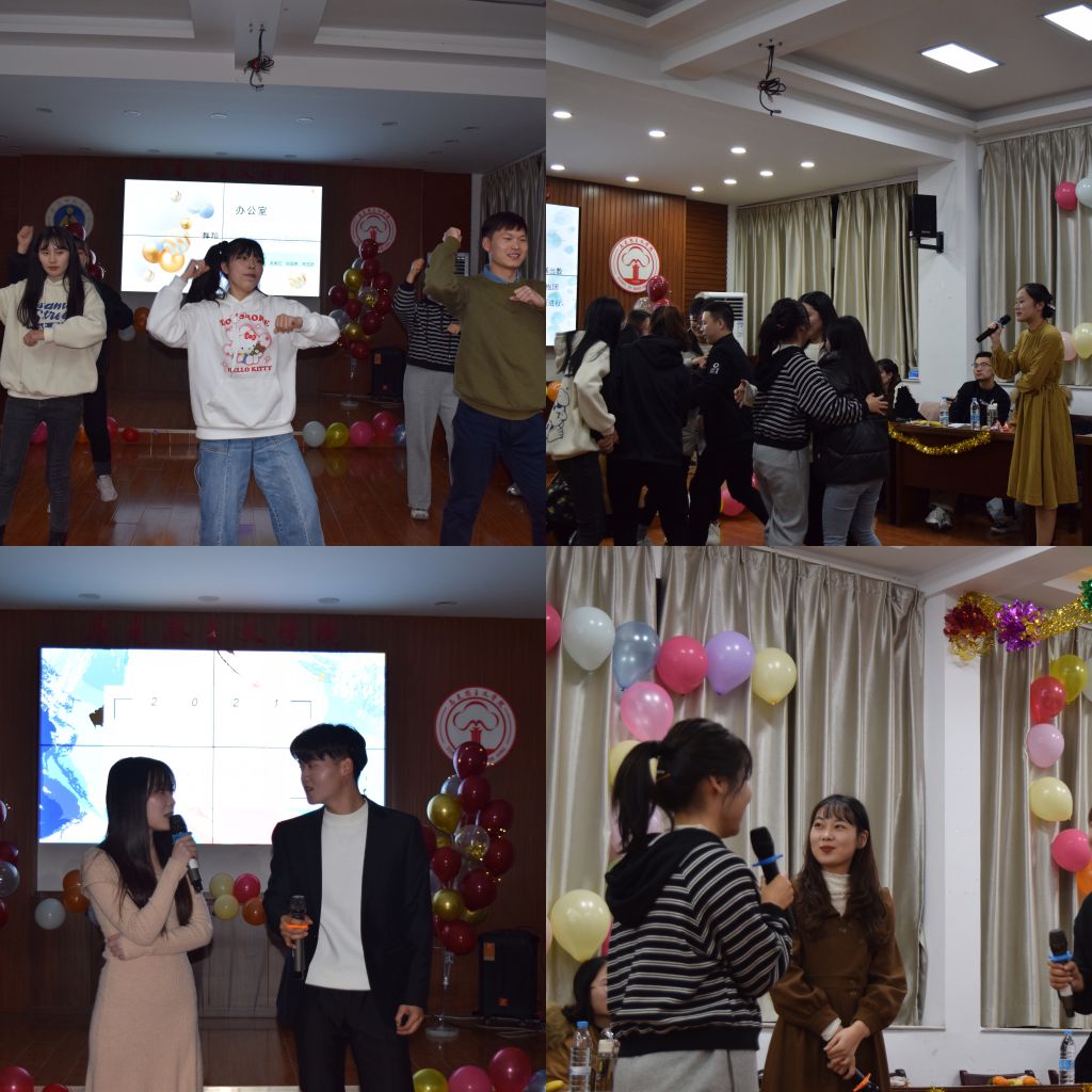 在四位主持人宣布下,茶话会正式开始,紧接着是院研究生会各部门成员带来的才艺表演,有歌曲演唱、诗词朗诵、舞蹈表演、小品及合唱等,各部门表演丰富多彩,精彩绝伦,现场气氛高涨,掌声不断。在节目表演期间隙还穿插了多种精心设计的小游戏,有你画我猜、抱团游戏、嘉宾抽奖等,整场晚会气氛活跃、掌声连连。最后,在合唱歌曲《你好未来》中此次茶话会圆满结束。