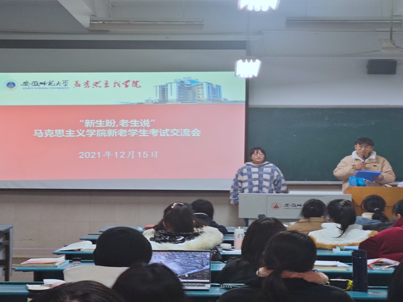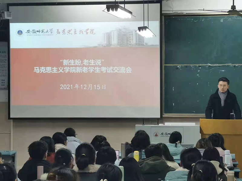 本网讯(文/摄 李爱思)为了让大一新生更好地应对期末考试,收获一份满意的答卷,12月16日晚7点,21级辅导员沈镇特邀请2018级思想政治教育专业李永超、2019级思想政治教育专业黄博文、2020级马克思主义理论专业时可三位优秀的学长学姐,分别在2号楼204、404、405教室举办“新生盼、老生说”期末考试经验交流会,给备考的学弟学妹传授考试的经验。本次交流会由沈镇主持,21级全体新生参加。