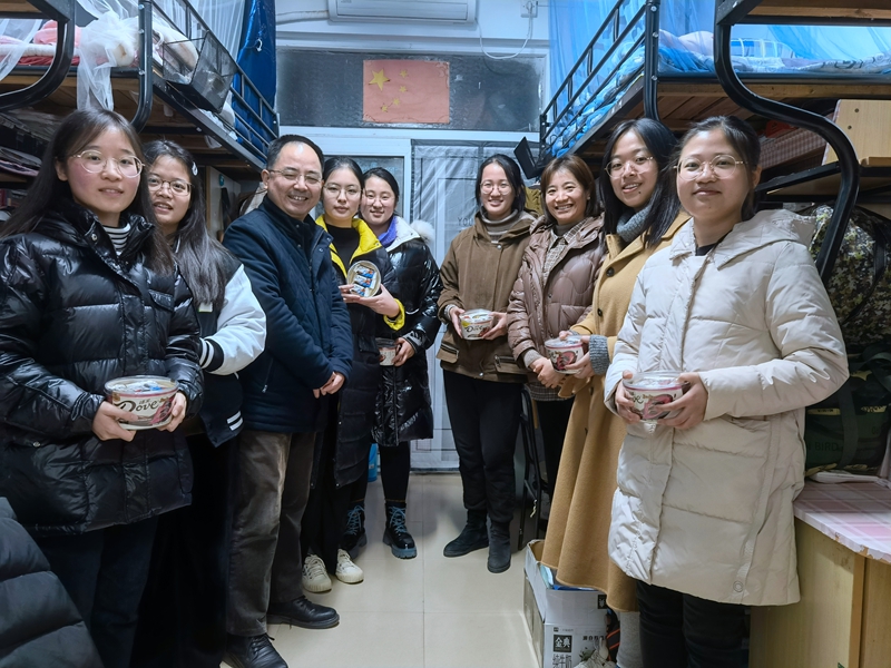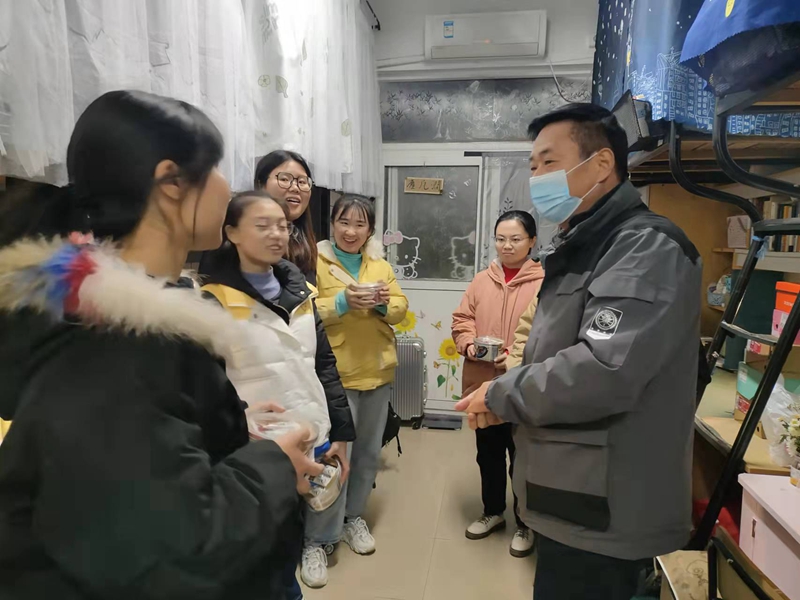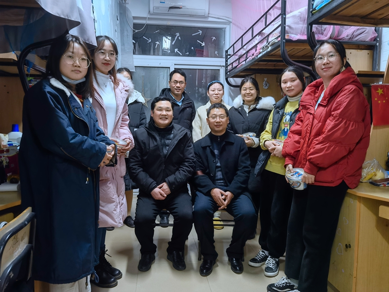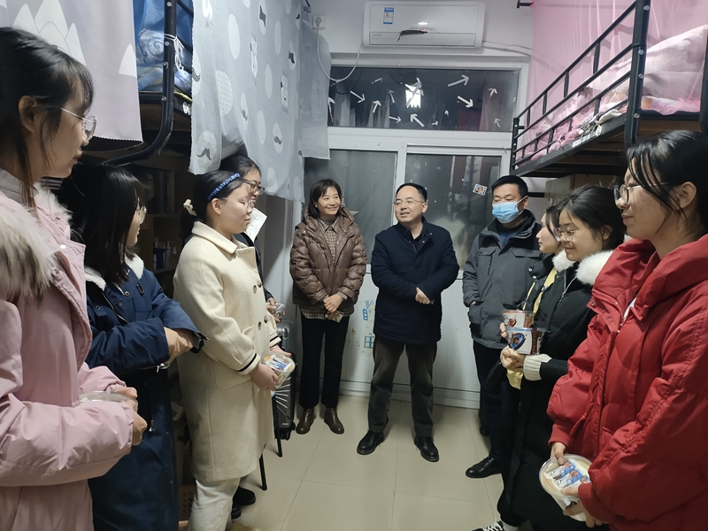 本网讯(文/鲍逸麟 摄/迟敏)在全国硕士研究生入学考试即将来临之际,为帮助学生增强考研信心、鼓舞考研士气,12月22日晚,永利集团304am院长姚宏志,党委副书记刘玉艳,副院长李祥兴、赵冰、余本玉,辅导员周楠走进学生寝室看望慰问考研学子,为考研学子送上冬日的温暖。