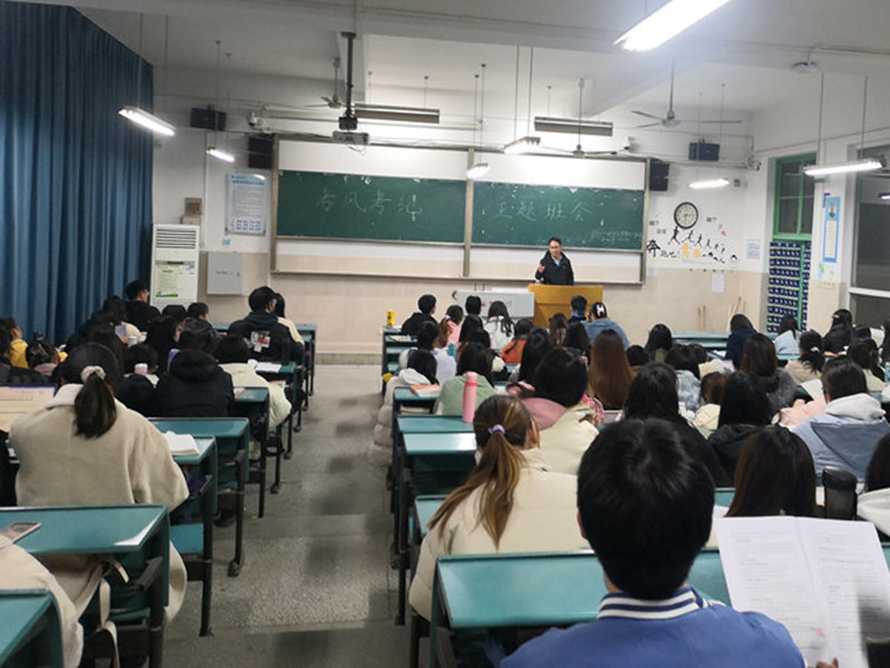 首先,周楠邀请了几位同学分享自己所了解的考试过程中应注意的问题和容易出现的错误。随后,周楠从考场纪律和违纪处分两方面强调了考风考纪的严肃性和重要性,讲解了学校对考试作弊行为的认定和处理办法。他再三强调违反考试纪律的严重后果,并列举了考生作弊受到严重处分的例子,叮嘱同学们树立诚信考试理念,端正考试态度,以诚信考试为荣,为考试舞弊为耻,自觉抵制考试作弊的不良风气,自觉遵守考场纪律。最后,周楠对同学们的复习备考提出了建议,从学科特点出发传授了答题技巧,他督促同学们合理安排复习时间,认真复习备考,争取在期末考试中取得优异成绩。