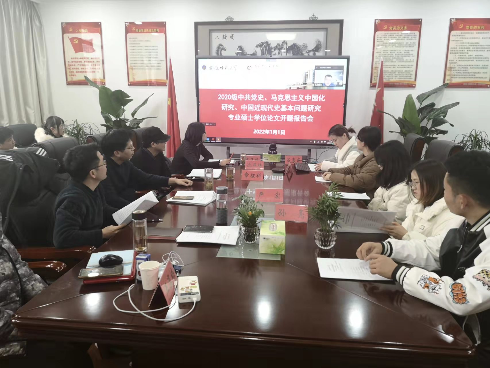 本网讯(文/周晏 摄/王艺潼、周晏、麦琪琪)1月1日上午,2020级中共党史、马克思主义中国化研究、中国近现代史基本问题研究专业硕士学位论文开题报告会顺利举行。此次汇报采取线上与线下相结合的方式,分为三个小组在学院行政楼一楼会议室、三楼培训研修中心和四楼第二会议室举行。分别邀请了南京信息工程大学蒋明敏教授、南京医科大学陶林教授和华中师范大学吕惠东副教授担任报告会组长,三个学位点导师担任报告会组员,2020级三个方向所有学生参加了开题报告会,2021级同学参加观摩学习。