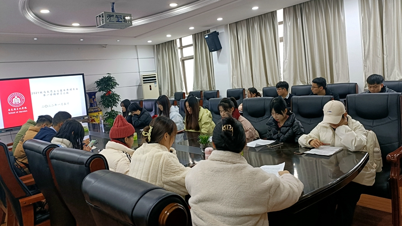 本网讯(文/鲍草草 摄/赵美丽)1月5日下午3点,马克思主义基本原理硕士点在学院四楼第一会议室成功举办2021级学生开学第一学期学习情况汇报。本次会议邀请了2020级马克思主义基本原理方向全体研究生参加,会议由2021级马克思主义基本原理班级班长鲍草草主持。