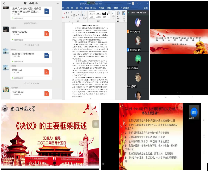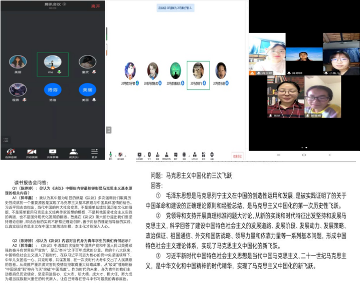 本网讯(文/图 肖玉婷 刘子豪 赵美丽 )最美不过四月天,本着莫负春光,莫负自己的初心。在同心战“疫”的特殊时期,2020级马克思主义基本原理硕士学位点坚持封控不封爱,封控不停学的精神,举办了关于第三个历史决议的阅读分享会。专业成员全员参与,各小组自行设计读书方案,通过自行研读文本、观看成员讲解、线上交流分享等方式,共同领悟党的第三个历史决议的伟大意义。