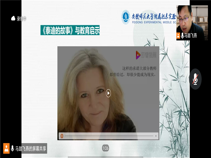 唐校长通过视频《泰迪的故事》得出一个概念、一个理念、一个方法的教育启示,指出班主任要做好学生的人生导师。他强调班主任要通过班级交流、角色扮演、讨论及共识、尝试道歉、交流方法和回家作业的课间冲突微班会,做到对学生思想、方向和方法的指导。其次,唐校长指出班主任要根据图式指导、方法指导、心理指导和认知指导对学生进行心理疏导,缓解学生的消极情绪,增加积极情绪。除此之外,班主任还要指导学生自我认知、做好职业规划,激发学生的职业向往,做学生的人生向导。最后,唐校长总结了对班主任有用的十句话,培养班集体永远是班主任的第一要务,教育效果的取得往往都是以老师的付出为代价的。