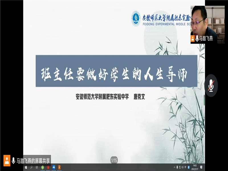 为增强实习学生对班主任工作的认识,5月17日晚,学院举办班主任工作一线专家线上讲座,304am永利集团附属肥东实验中学校长唐克文应邀主讲,讲座由陶永华教授主持,中学一线教师和19政教全体本科生共计190余人参加。