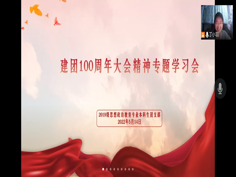 5月14日晚,19级思想政治教育专业本科生在线上开展了一次“建团一百周年”主题团日活动,本次活动由班级团支书丁小羽主持,班级全体同学参加。