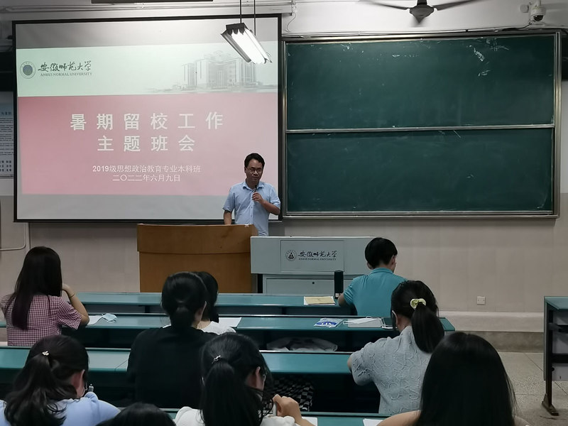 6月9日下午,永利集团304am2019级思想政治教育专业在行知楼2020403教室召开了“暑期留校工作”主题班会,本次班会由辅导员周楠担任主讲人,19政教全体本科生参加。