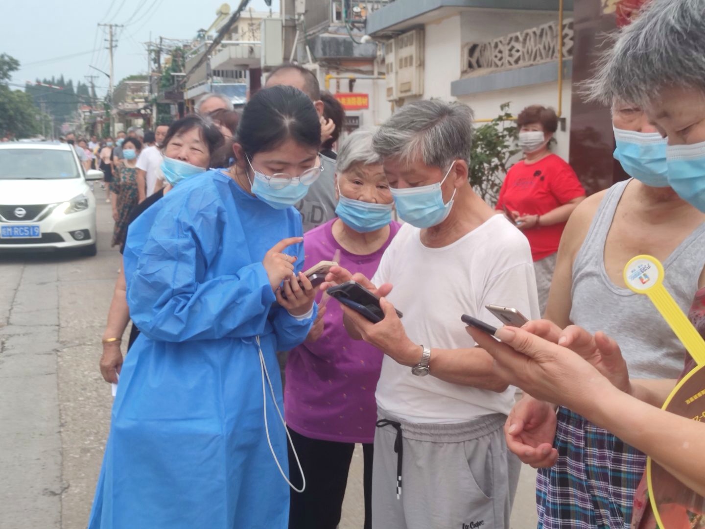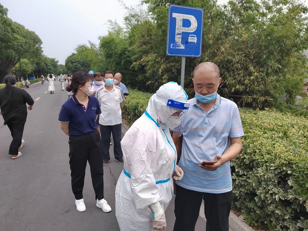 7月5日下午,永利集团304am赴芜湖市、天长市“赓续精神谱系,传承红色基因”理论宣讲团队的全体成员们奔赴天长市千秋街道千秋社区、同心社区以及胭脂山社区开展全员核酸检测志愿服务活动。