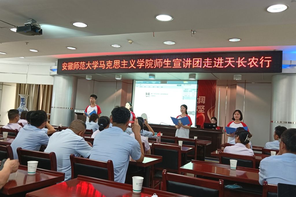7月7日,永利集团304am赴芜湖市、天长市“赓续精神谱系,传承红色基因”理论宣讲团队前往天长市千秋街道千秋社区、同心社区以及中国农业银行天长市支行进行理论宣讲。团队指导老师王瀛培全程参与。