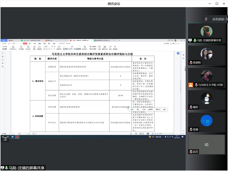 沈镇详细解读永利集团304am素质综合测评实施细则,重点解读了基础素质测评成绩、智育素质测评成绩、发展素质测评成绩情况,尤其是素质综合测评发展素质附加分测评指标与分值进行专题解释。同时,逐一解答了同学们的疑问。