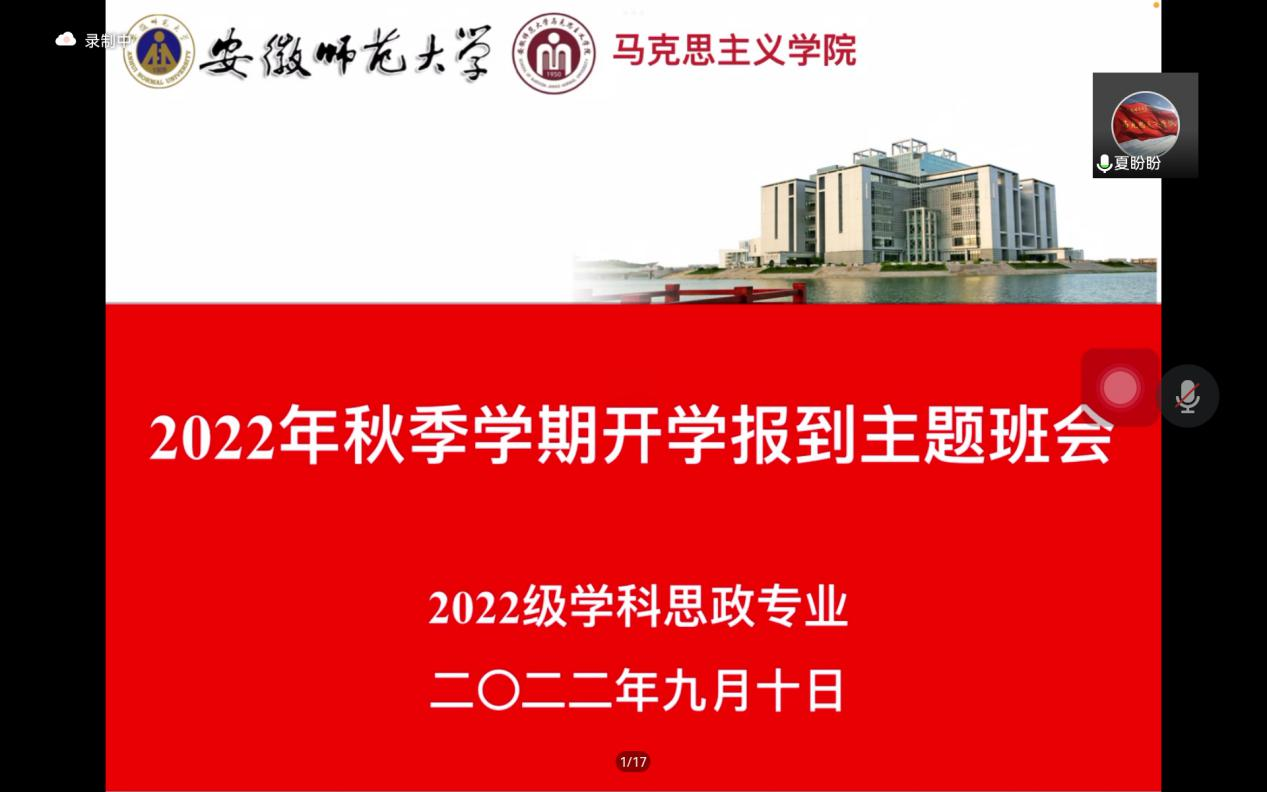 为积极落实学校疫情防控工作,扎实做好疫情防控常态化下新生开学准备。9月10日下午,学院2022级学科思政专业召开了线上主题班会。会议由辅导员夏盼盼主持,22级学科思政专业全体同学参加。