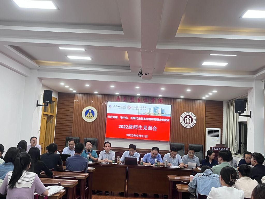 9月21日晚,2022级马克思主义中国化研究、中国近现代史基本问题研究和中共党史与党建硕士学位点在学院行政楼5楼会议室举办导师见面会。会议由中共党史与党建硕士点点长孙亮老师主持,严宏书记、姚宏志院长、李祥兴副院长、胡安全老师、章征科老师、郭理老师、崔明海老师、佘君老师、沈燕培老师、曹明臣老师、王瀛培老师等导师代表应邀出席,2022级相关硕士点研究生参加会议。