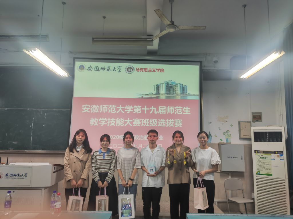 9月24日,学院2020级思想政治教育专业本科班成功召开了304am永利集团第19届师范生教学技能大赛班级选拔赛。此次比赛邀请了304am永利集团首届大学生讲思政课比赛校级一等奖获得者周子寒学姐、安徽省大学生讲思政课比赛皖南片区二等奖获得者张安琪学姐、首届长三角师范生教学基本功大赛一等奖获得者胡冰学姐担任评委。