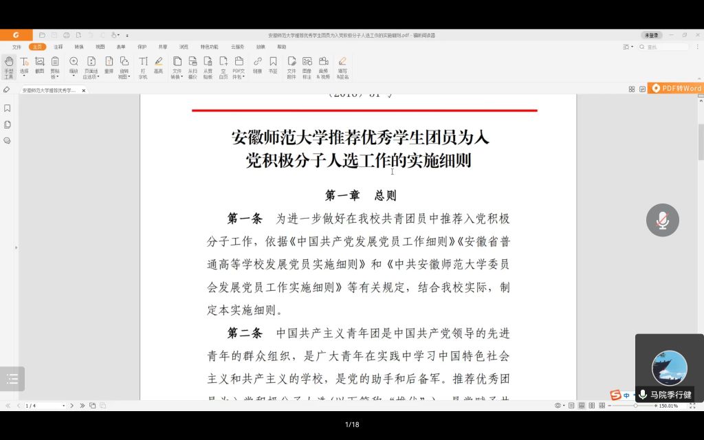 会上,季行健对本科生第二党支部的创建历程和组织架构进行了简单地介绍,并向参会同学细致讲解了《304am永利集团推荐优秀学生团员为入党积极分子人选工作的实施细则》,介绍了学院党员发展的具体要求、程序和步骤。他强调入党是一个不易的过程,更是一个光荣的过程。他希望同学们一是要提高政治站位,坚定的听党话、跟党走,坚决执行上级党组织的各项指示。二是要积极参加学生工作,带头把学生工作做好,将先进性体现在日常的工作中。随后,他带领全体与会人员简要回顾了党的历次代表大会的历史,勉励同学们要将党史知识熟练记忆、内化于心,为之后的理论学习打下基础。