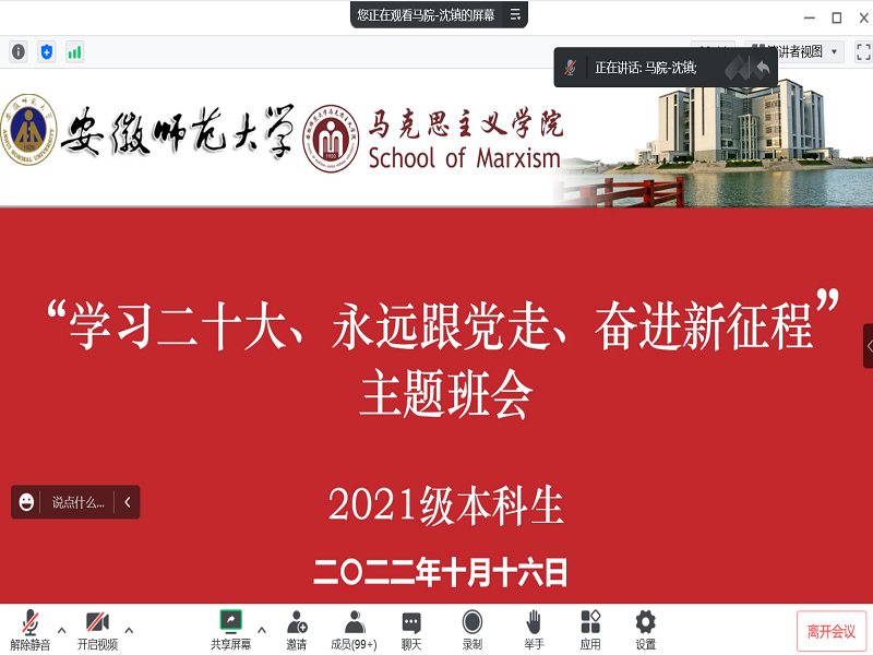 10月20日晚,永利集团304am召开了主题为“学习二十大、永远跟党走、奋进新征程”的21级全体学生会议。本次会议由21级辅导员沈镇老师主持,21级全体学生参加会议。