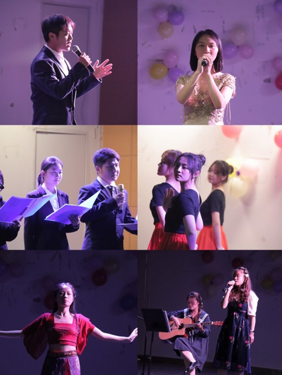 本次大赛在一场可爱的集体舞蹈《失恋阵线联盟》中拉开了序幕。紧接着,一首首歌声回荡在比赛现场。一首由胡妍、黄奕同学带来的《晴天》向我们诉说着青春故事里中说不尽的忧伤;总有些遇见,隔着茫茫人海,带着温柔而来,合唱歌曲《遇见》让大家不禁回忆起人生中那些不期而遇的温暖;李睿青倾情演唱的歌曲《序章》让那些刻骨铭心的电影画面在观众们的脑海里一幕幕上演;心若向阳,无畏悲伤,张明珠、刘思尹同学带来的歌曲《裹着心的光》温暖了在场观众的心,让大家感受到即便跌进昏暗的角落,也会有裹着心的光在发亮;微微晨光点亮着喧嚣世界,一首《微微》,呈现着渺小亦可变为伟大的进取之态;歌曲《云与海》中,李芳以动听空灵之音表达了对于热爱的追求。