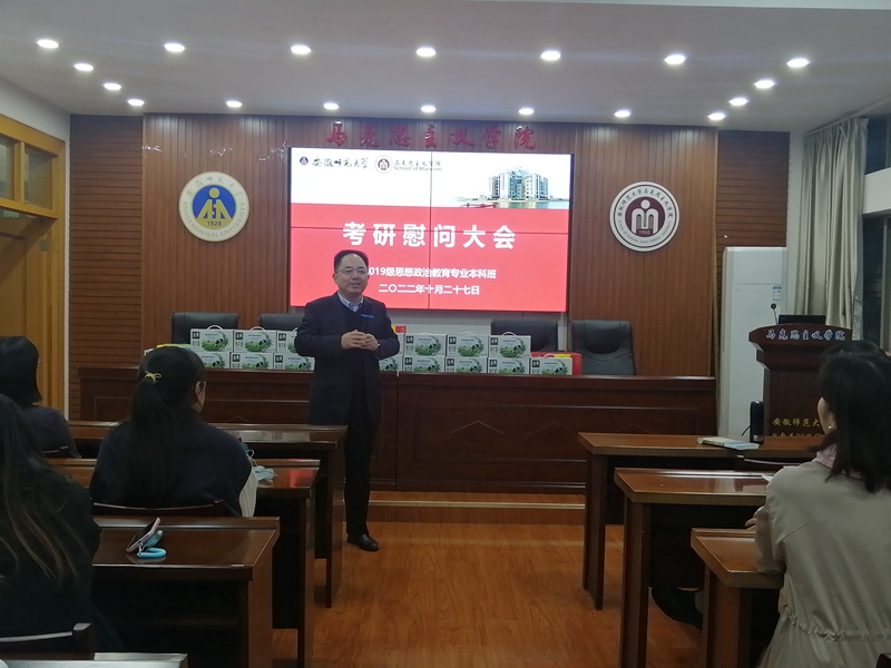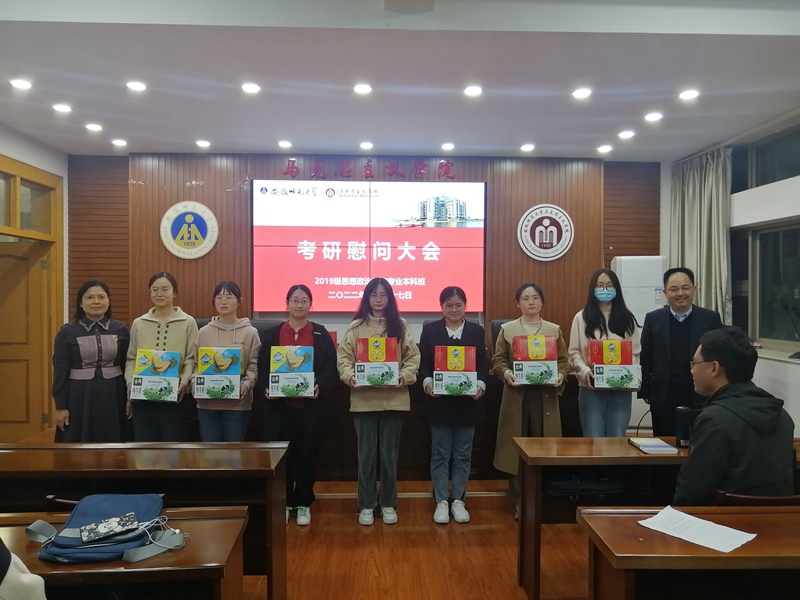 会上,姚宏志老师强调了考研的注意事项,指出考研政治需要结合马工程教材进行全面系统的复习;在考研冲刺阶段要有计划、有针对性地复习,建立系统、完善的知识框架;在备考过程中学会自我调试,保持平稳的心态,努力克服各种困难,提高复习效率,将考研坚持到底,同时预祝同学们都能进入理想院校进行深造。同时,姚院长也提到,学院将邀请有关老师为考研学子提供专业指导。最后,姚宏志、刘玉艳、汪盛玉、余本玉共同为考研学生颁发了慰问品,并亲切地和同学们交流。