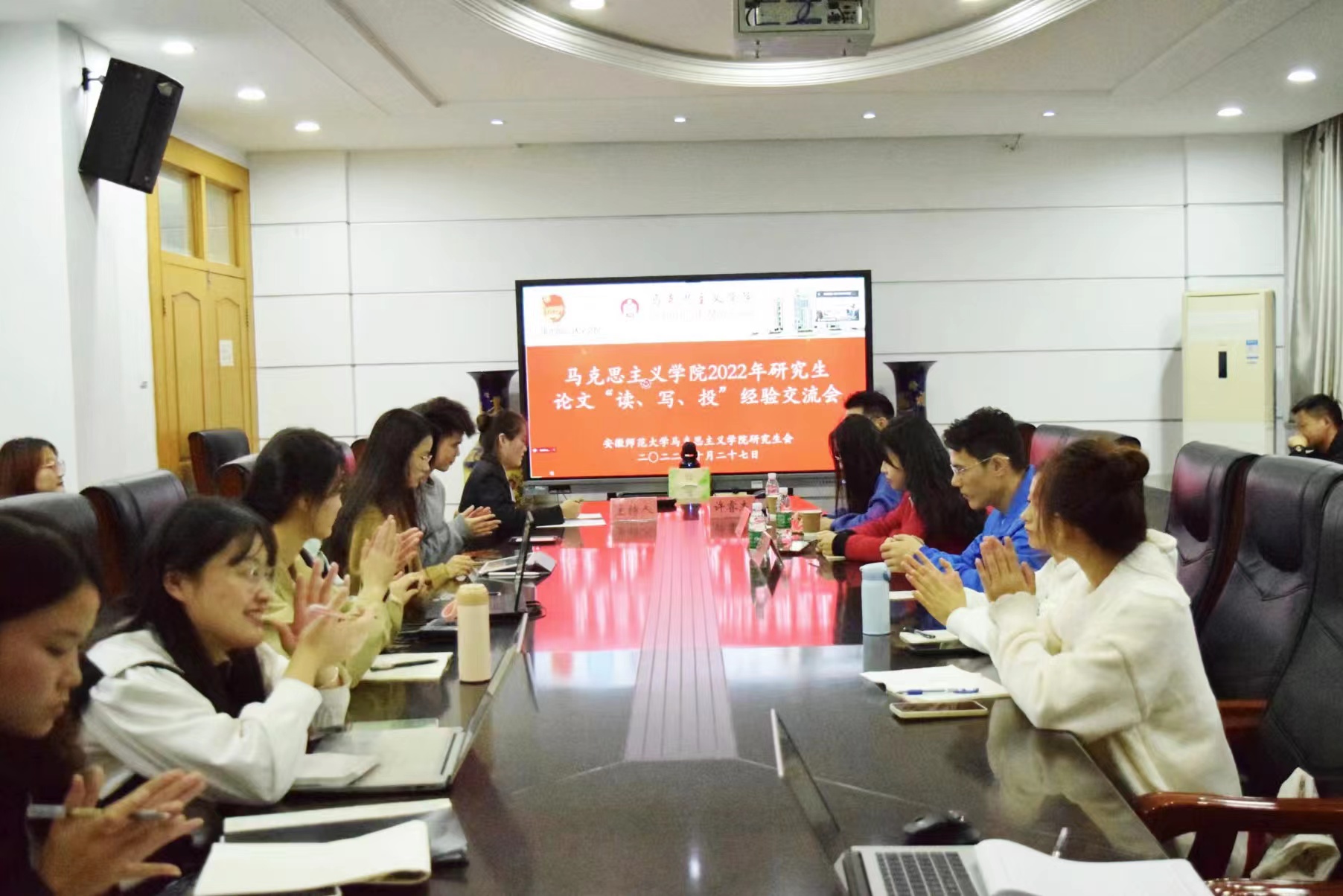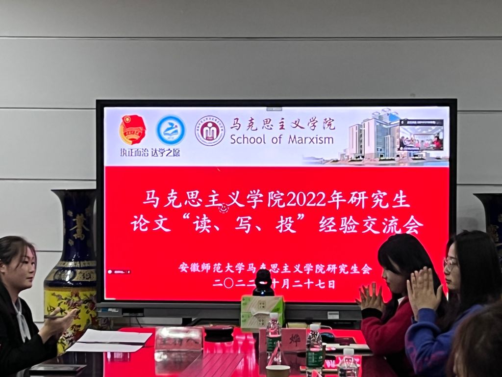 为进一步提高研究生在论文阅读、写作以及投稿方面的能力。10月27日晚,院研究生会在学院四楼第一会议室举办了论文“读、写、投”经验交流会。本次会议采取线上线下相结合的方式进行,邀请了20级思想政治教育专业许睿杰学长、孙婷婷学姐和20级哲学专业李烨学姐共同分享关于论文阅读、写作以及投稿方面的丰富经验。会议由研会学术部委员刘纪欣同学主持,研究生会全体成员及部分研究生同学参与了本次会议。