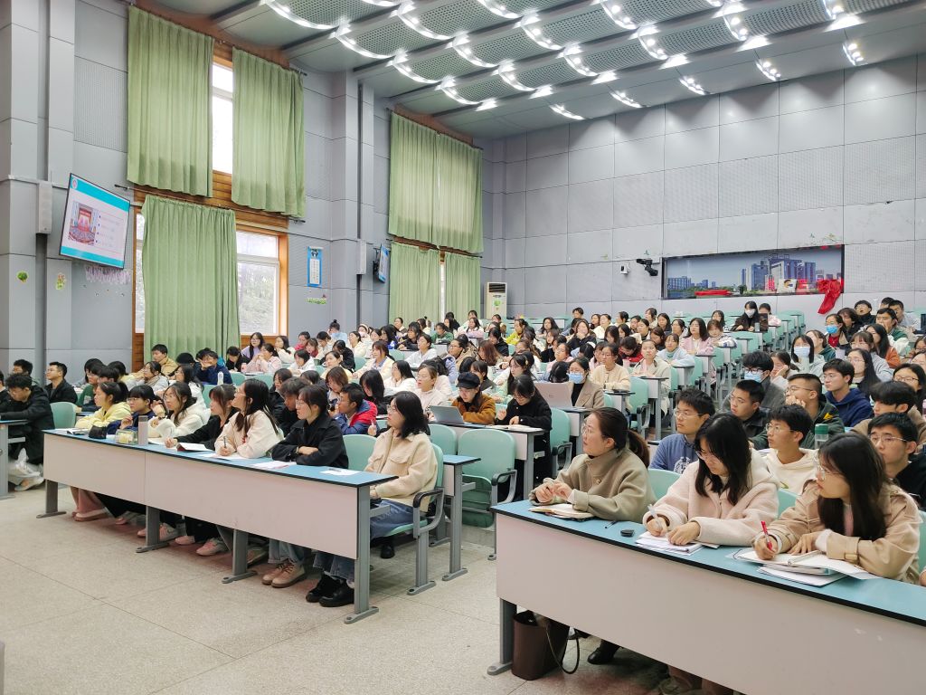11月19日下午,学院党委委员、院长姚宏志教授在行知楼2010105教室为2022级思想政治教育专业本科生宣讲党的二十大报告。讲座由本科生辅导员陶娴静主持,2022级思想政治教育专业全体学生参加。