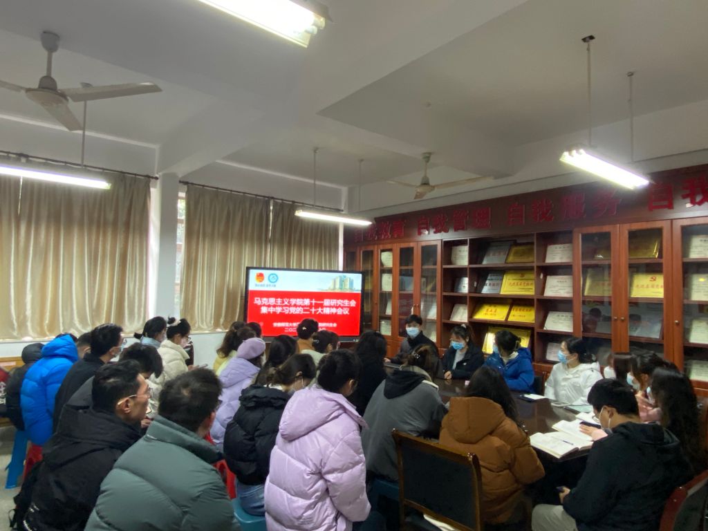 为深入学习贯彻党的二十大精神,加强学院研究生会成员的思想建设,推动学院研究生会的队伍发展。11月30日下午12:30,院研究生会在学院一楼学生会办公室集中学习党的二十大精神,本次会议由院研究生会主席张猛主持,研会全体成员与会。